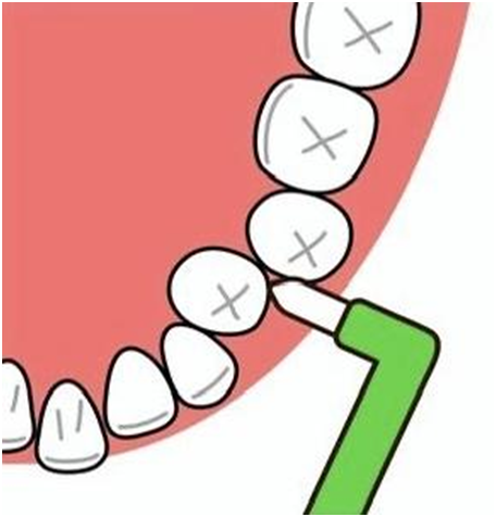 奥歯を綺麗にするときは少し口を閉じ気味で行うと歯間ブラシが奥に入りやすいので清掃しやすいです。